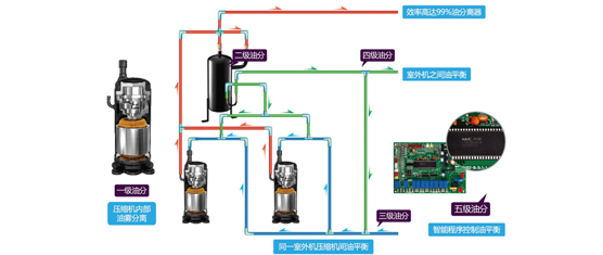 系統(tǒng)根據(jù)系統(tǒng)負(fù)荷情況,輪換設(shè)置優(yōu)先開啟的室外機(jī)模塊的壓縮機(jī)順序,平衡分配每臺(tái)室外機(jī)模塊的運(yùn)行時(shí)間,大大提高了機(jī)組的可靠性和使用壽命。